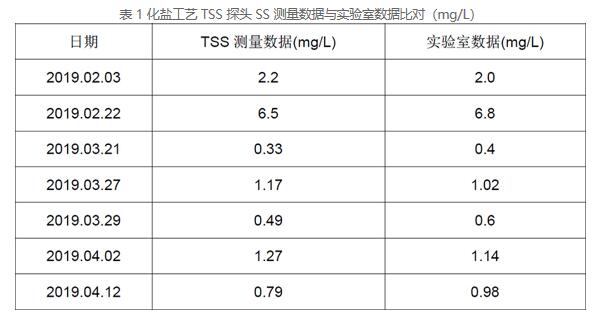 從表 1 來看,7 組 TSS 探頭的測量數據與實驗室數據的相對誤差均在 20%以內,能夠滿足客戶工藝控制的要求。