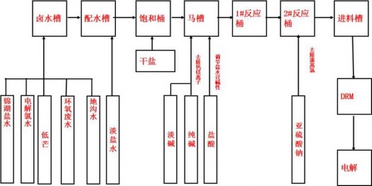 該化工用戶精制鹽水的制取工藝流程圖如下所示: